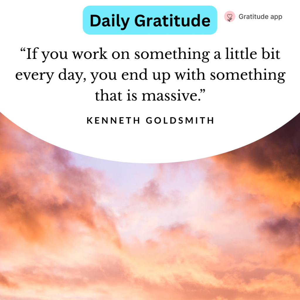 Daily Gratitude: Think back over your life and see if this has proven true for you. I bet you’ll find at least one example. But it’s interesting that even when we’ve seen it in action, we don’t seem to recognize it as a principle we should follow or a practice we should employ every day. And I think that’s because we’re programmed to look at the here and now and we forget the past – when it’s convenient to forget it. Ha. We’re really good at remembering when things didn’t go so well. Anyway, how do you think books or songs get written? Not all in one day but with continual effort. And a book doesn’t usually get written by talking about a different thing every day. Usually there’s a theme or idea or plot that all writing is centered around. Each day. Every day. Exercise is like that. Why do you think there’s so many “couch to xxx” programs where the xxx can be a 5K or a marathon or whatever. These programs are built around doing something every day that works toward the end result. What end result do you have in mind? It could be anything. Once you know what it is and have determined the best way to get it then put that action on the calendar for at least 6 of the 7 days a week. I’ve recently started writing every day thanks to having found an accountability partner. But I had to miss one day that wasn’t planned. The next day you wouldn’t believe how hard it was to “find the time” to do my writing. I had all sorts of reasons (aka excuses) why I couldn’t write that day. It shocked me. But it shows this effect too although in the opposite manner. It was more of the doing nothing will create more of the same – nothing. Fortunately I did pick up the computer and did write. That made it easier the next day and so on. Start with small actions and keep doing them. You can do decluttering that way. You’d be surprised how much you can get done in 10 minutes. I amazed myself one year when I decided I was going to declutter 10 minutes every day. I’m pretty sure I was just doing this to say “I told you so” (I guess I wanted to say it to all those who said it was possible). And guess what? I got a lot done in those 10 minutes repeated daily. Try this and let us know what happens. It works with anything.