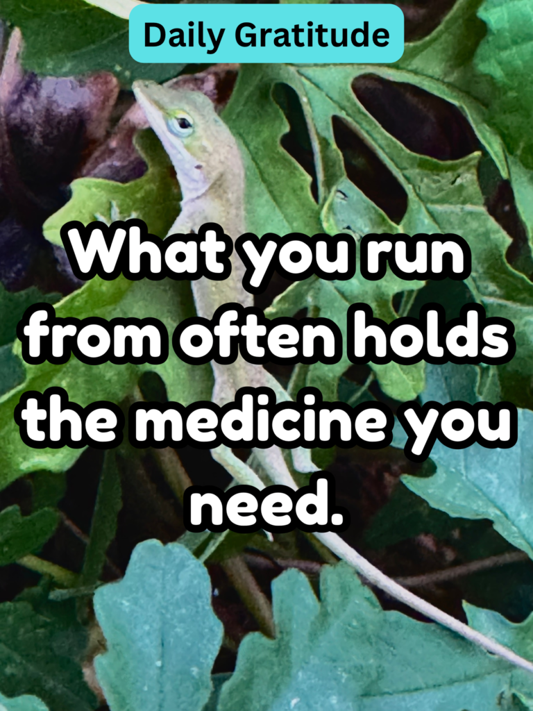 Daily Gratitude: Maybe instead of saying “why me?” You could consider saying “what medicine is in front of me that I need?” Or “what lesson am I supposed to see here”?
