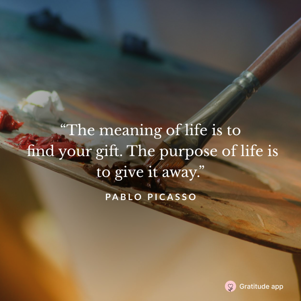 Daily Gratitude: This is so beautiful. And so useful. We can spend a long time trying to find some sort of meaning in what we do. Once we do, though, then it’s time to realize that we must give it away in order for that meaning to be meaningful.