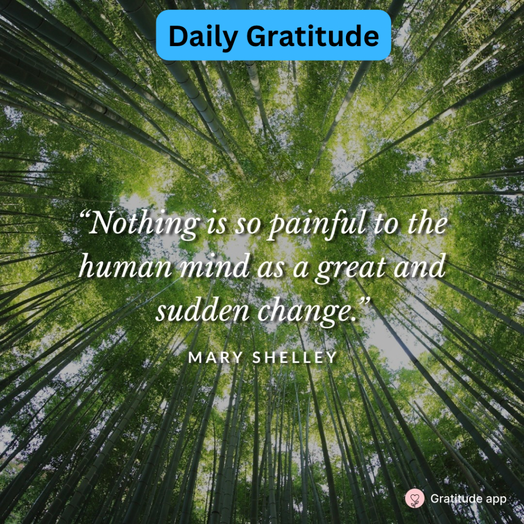 Maybe if we introduce change into our normal patterns, it won’t be as shocking. This still won’t help the sudden and great change this quote talks about. But it might help in our everyday life. Even if it doesn’t help dealing with the change, it may help accepting it. Those are two different things. You have to be able to accept something before you can deal with it.