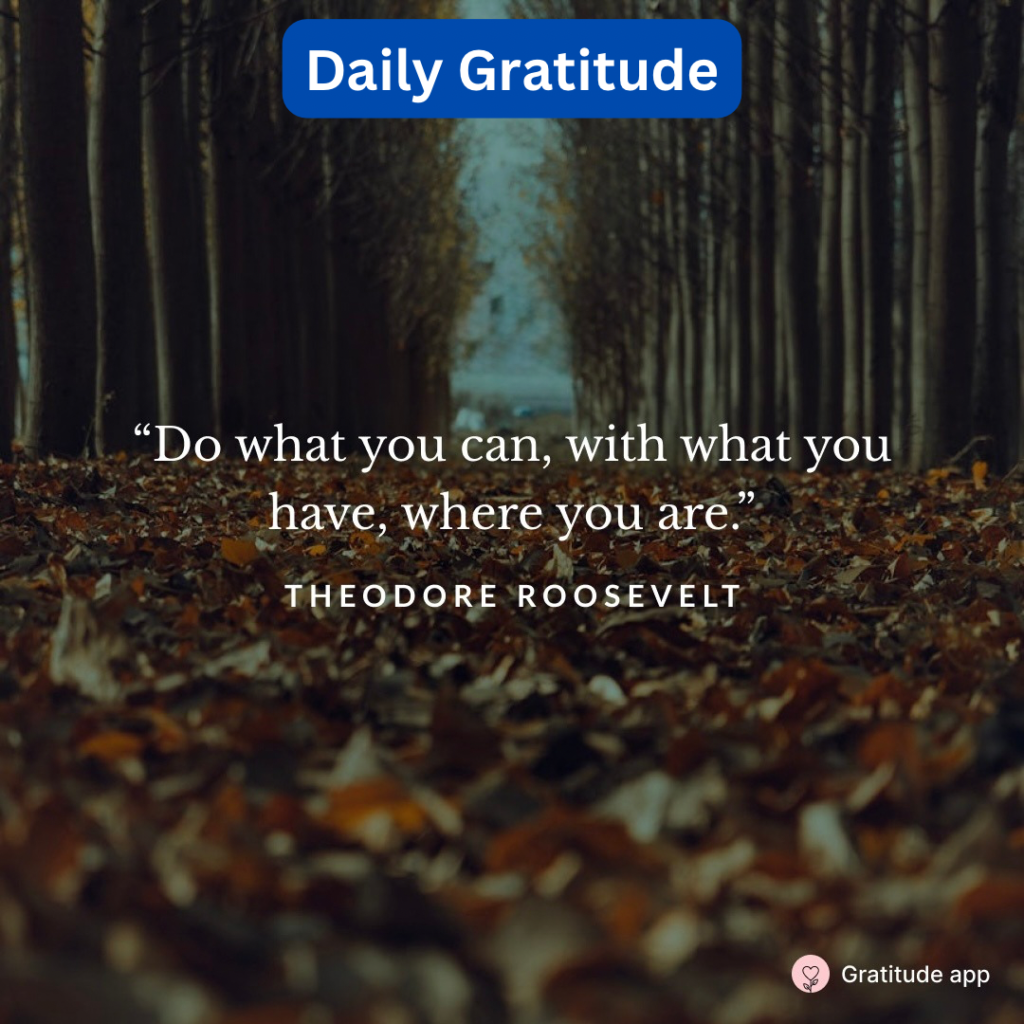 Daily Gratitude: Right now there’s so much in the world that we wish was different, but that we don’t have any control over. What a helpless feeling that is. And it’s a hopeless feeling also. But instead of floundering around, bemoaning the state or the world, we have to take some control of our thoughts and then our lives. If there is something you can do to help correct the situation, then by all means, take action. If not, then focus on what you can do. How can you make your little section of the world better? Who can you help? I think if each of us would ask ourselves this one question every single day and focus on the answer, we’d be happier and eventually the world would be a better place. But neither you nor I can “make” someone else focus on that question and answer. However, we can focus on doing it ourselves. Remember Mother Teresa talking about not being able to tend to the masses but able to tend to the one in front of her right then. That’s what you can do too. On the way home from my walk one day i went into Dunkin Donuts to get a drink. There was a woman on my side of the counter in a Dunkin outfit. She told me she’d be right back and would take care of me as soon as she could. I said ok. I really didn’t care. Another woman came over and took my order. The first one eventually came back, again apologizing for the delay. She was truly glad when I told her the other woman had taken care of me. She then explained that she’d had to use the restroom etc. she treated me like I was her only customer ever and my happiness would determine the success of her business (which is actually true if you look at it the right way). I felt special and all I wanted was some coffee. Do you think you could do that for or with someone today?